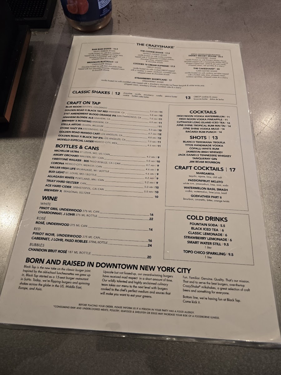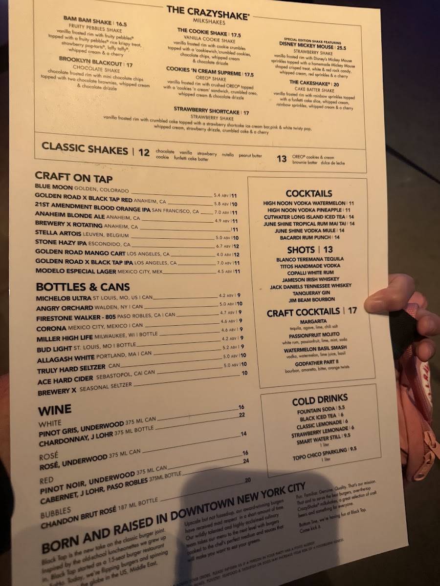 The ambiance of Black Tap is a lively blend of cool and casual. The decor offers a modern twist on your classic burger joint, enhanced by vibrant colors and a nostalgic soundtrack that wraps you in a warm, joyful mood. It's a great spot to unwind after a fun day at the parks. Former guests have lauded the restaurant's efficiency and warmth, with stellar reviews praising the attentive staff—like Jo, who not only anticipates your needs but also adds a personal touch to your dining experience. And as one customer said, "The cooks and prep staff moved like the gears in a clock," ensuring a smooth and enjoyable meal.